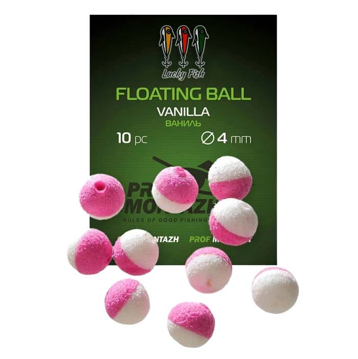 Floating Ball – o nadă inovatoare fabricată din material EVA, are o flotabilitate ridicată și o aromatizare de durată, permițând utilizarea multiplă. Este disponibilă în șase dimensiuni: 4, 5, 6, 7, 8 și 10 mm. Floating Ball poate fi folosită atât individual, cât și în combinație cu alte tipuri de năluci, în pescuitul crapului, la feeder sau la plută. Este deosebit de valoroasă în pescuitul pe fund mâlos sau în situațiile în care este necesar să se ridice cârligul deasupra substratului. Pe lângă aromele atrăgătoare, fiecare variantă are o culoare distinctă – de la portocaliu și galben intens până la maro – ceea ce permite pescarului să evidențieze cu ușurință nada pe orice tip de fund. Pentru o utilizare facilă, nada are un orificiu, fiind ușor de montat atât pe firul de păr, cât și direct pe cârlig.