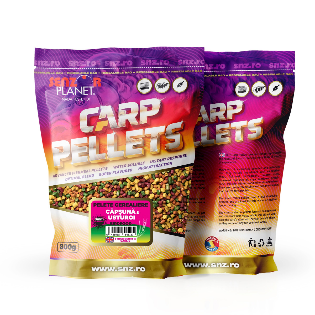 Pelete cerealiere capsuna & usturoi (mix culori) 3mm 800g