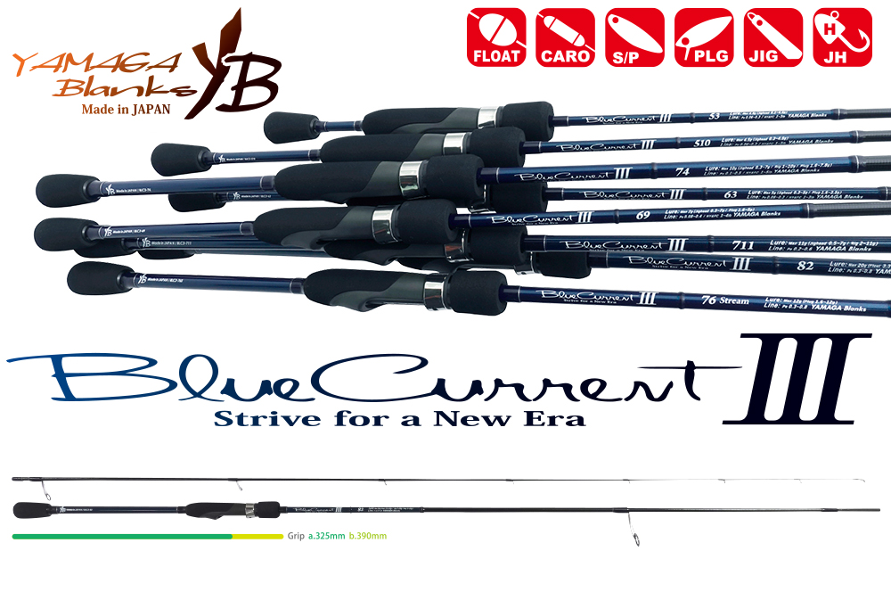 BlueCurrent detine un loc important in portofoliul Yamaga Blanks, modelul in sine primind constant imbunatatiri de-a lungul timpului. Versiunea BlueCurrent III a fost finalizata in anul 2020, luna februarie. Imbunatatirile se resimt atat in lanseu cat si in drill, expresii clare ale noilor dotari montate pe blank-urile Yamaga. Numeroasele teste au condus la utilizarea unui procent de 90.5 % carbon pentru realizarea blank-ului perfect. Greutatea si rezistenta sunt doua dintre elementele resimtite imediat, inca de la prima atingere.